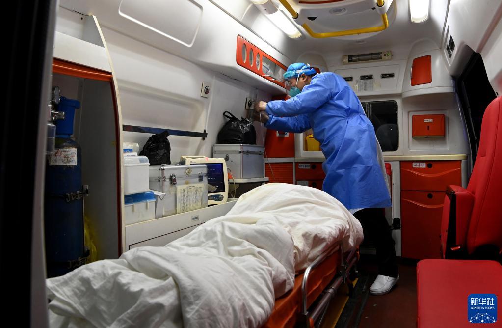 1月1日,西安交通大学第一附属医院急诊科的医务人员将患者用救护车转往医院其他院区住院治疗。