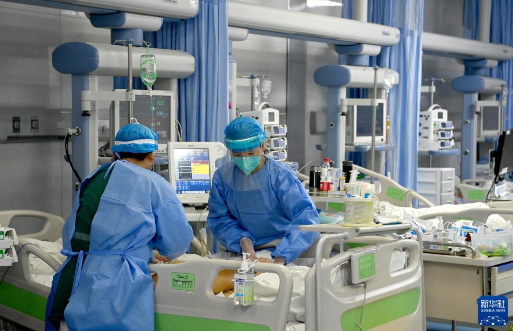 2022年12月31日,西安交通大学第一附属医院急诊科EICU的医务人员在护理重症患者。