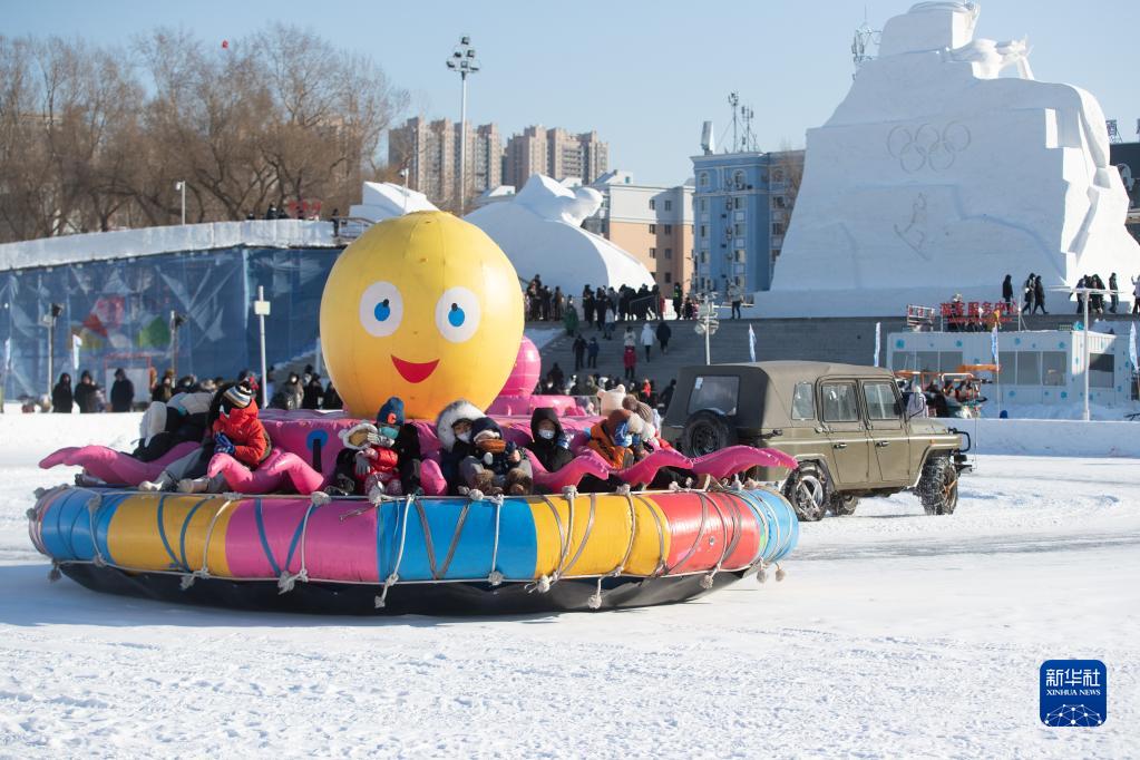 1月1日,游客在黑龙江省哈尔滨松花江冰雪嘉年华园区游玩。