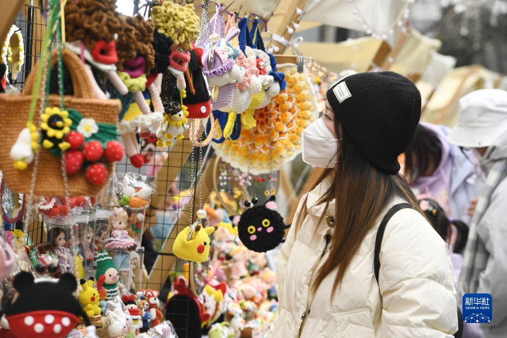 1月2日,市民在江苏南京老门东景区选购小商品。