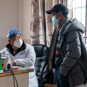 2022年12月30日,云南省昭通市镇雄县泼机镇亨地村村医陈波在接诊。