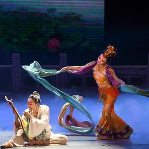 《丝路花雨》由甘肃省歌舞剧院创排,取材于敦煌壁画艺术,博采各地民间歌舞之长,展现了唐朝对外经济、文化交往频繁的盛况。