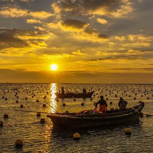 当日,在山东省荣成市寻山街道爱伦湾海洋牧场,渔民驾驶渔船在海上忙碌着,呈现一幅“海上冬耕”的画面。