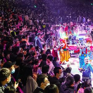 2022年12月31日,不少游客在广州长隆旅游度假区大马戏剧场迎接新年。