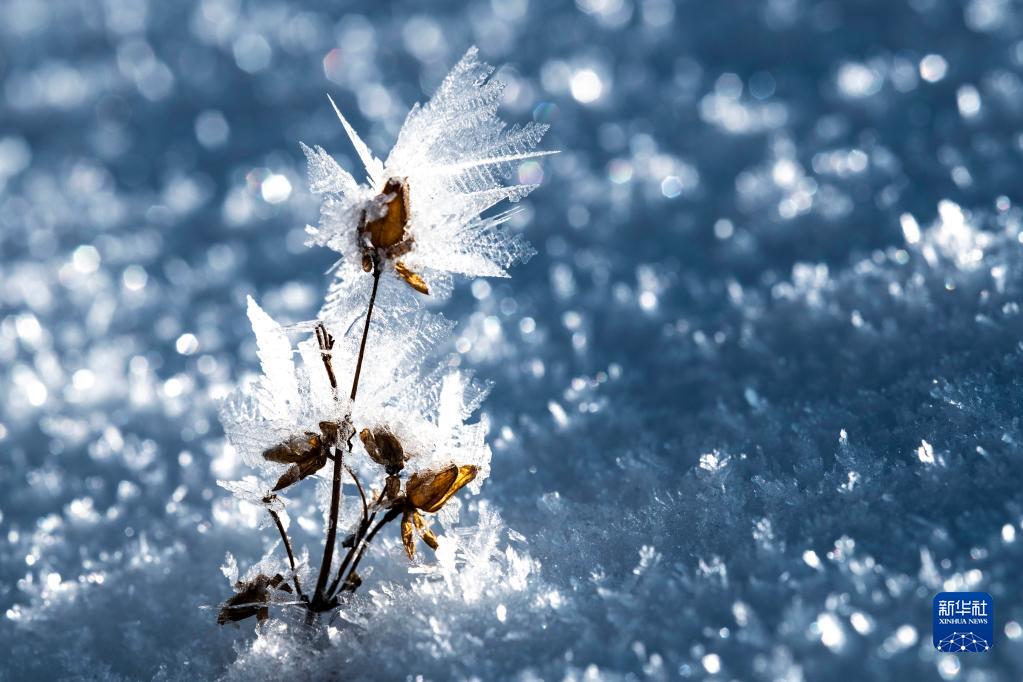 1月2日,在云南省维西傈僳族自治县保和镇,雪地里的植物结了冰花。