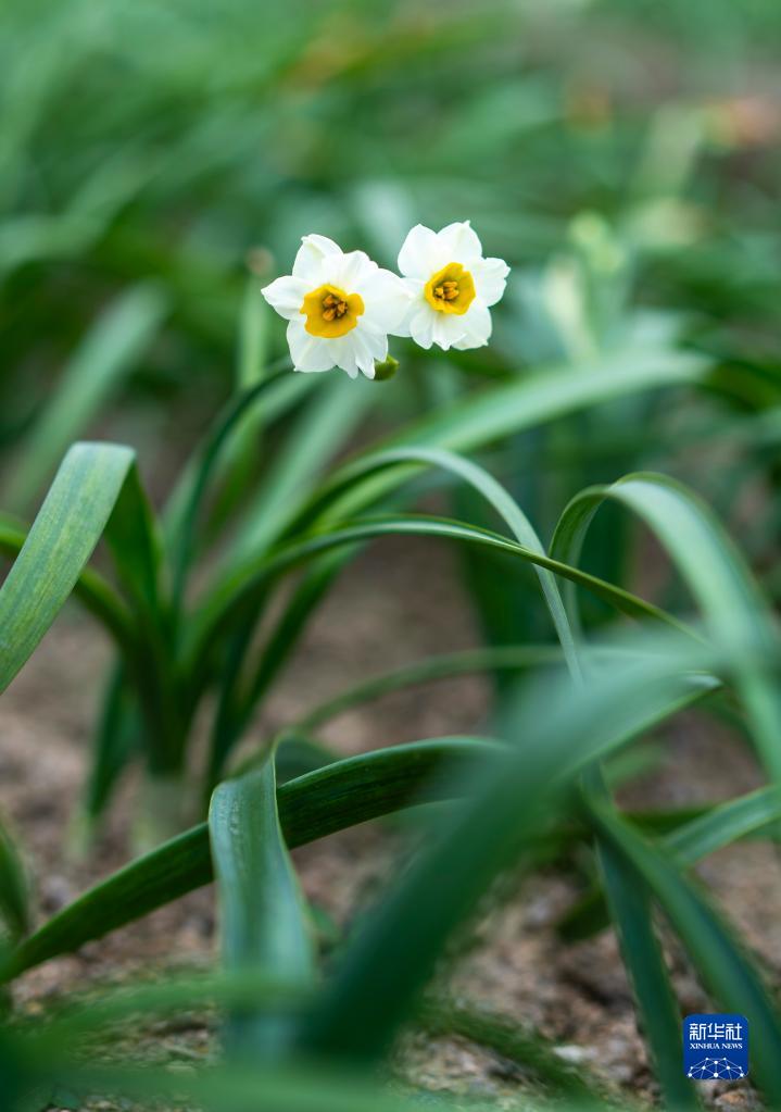 1月2日,在福建漳州高新区,水仙花在田间绽放。