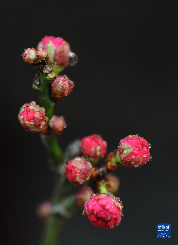 1月2日在山东省滕州市董村花卉市场拍摄的梅花花苞。