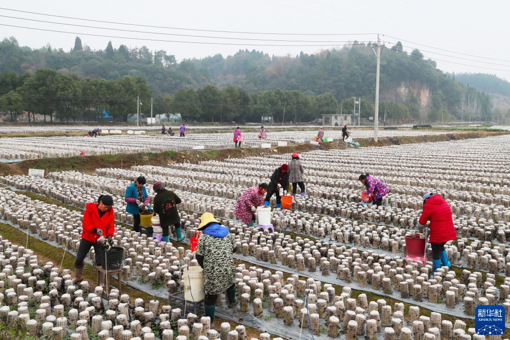 1月3日,湖南省永州市新田县新圩镇长富村村民在采摘黑木耳供应市场。