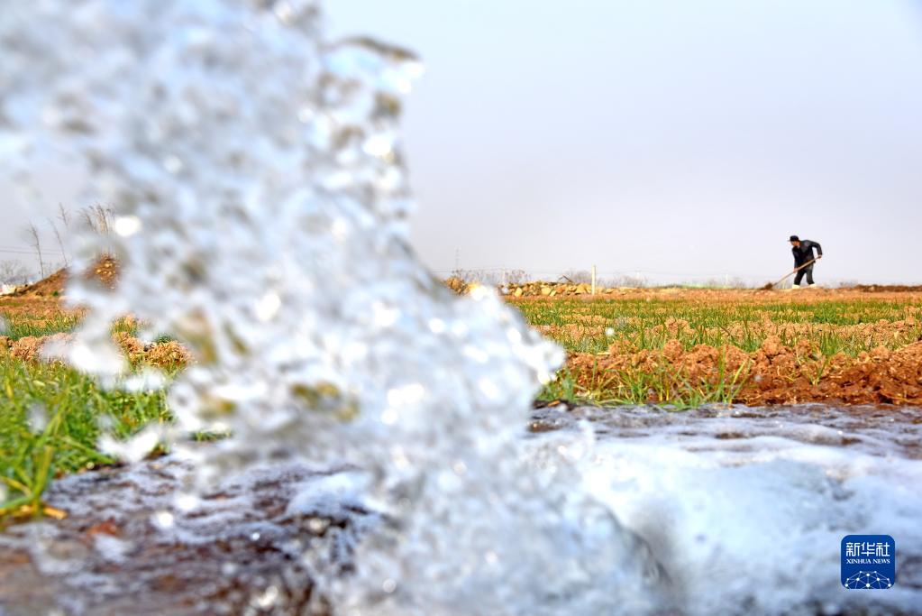 1月4日,山东省枣庄市山亭区桑村镇任庄村农民在灌溉小麦。