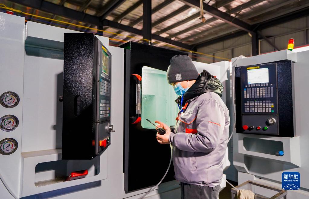 1月4日,在四川省会东县小岔河特色产业园区一家汽车零部件企业的生产车间,一名在此就业的移民群众在工作中。