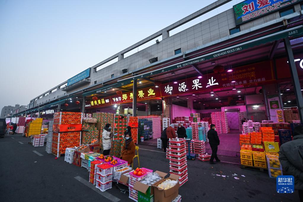 春节临近,在浙江金华农产品批发市场和水果批发市场,来自各地的蔬菜水果品种丰富、供应充足,市面购销两旺、年味十足。