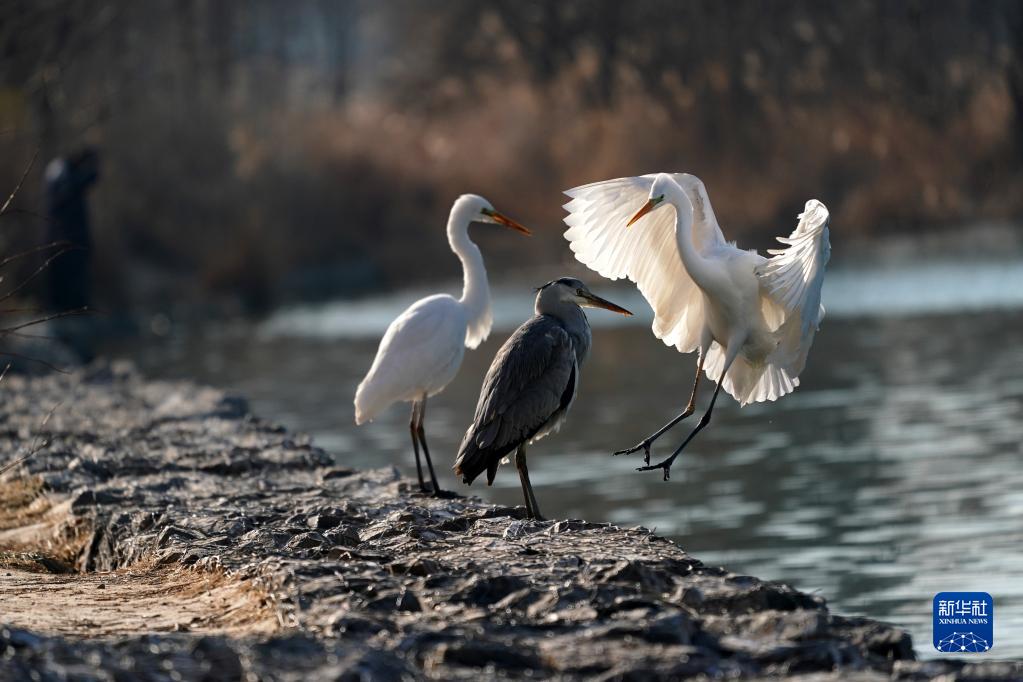 时下,在山西太原的“母亲河”汾河边,成群的候鸟翩翩起舞,吸引不少游人和摄影爱好者。