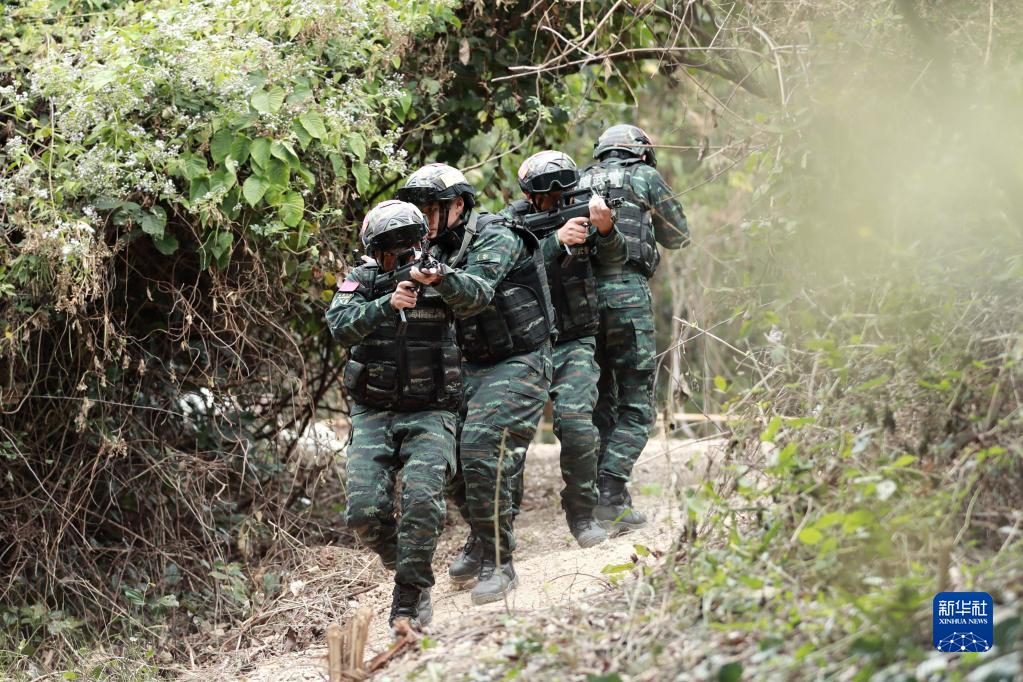 1月3日,武警海南总队三亚支队组织特战队员在热带丛林开展捕歼战斗演练。