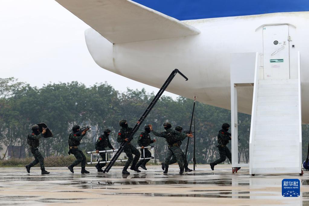 1月3日,武警海南总队机动支队特战分队进行反劫机演练。