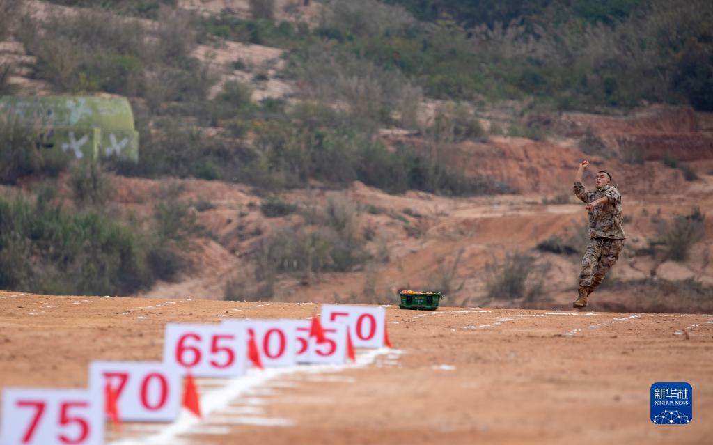 1月3日,陆军第73集团军某合成旅组织比武竞赛,一名战士在进行手榴弹投掷。