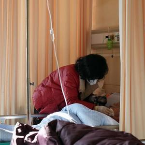 这是1月4日拍摄的上海市斜土街道社区卫生服务中心输液室内的氧疗区。