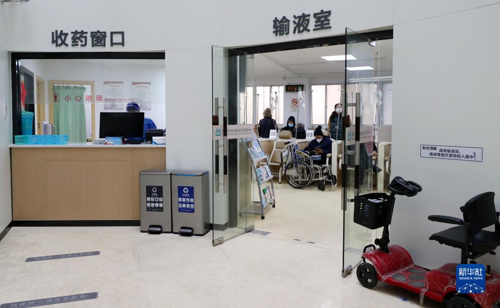 这是1月4日拍摄的上海市斜土街道社区卫生服务中心输液室外景。