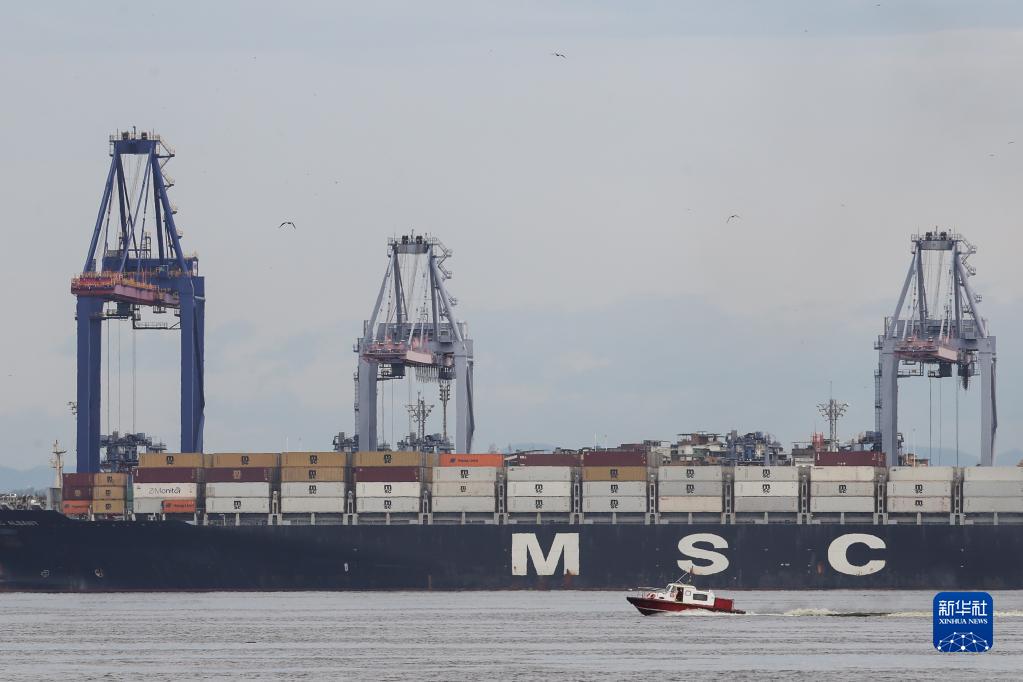 1月4日,一艘集装箱货轮停靠在巴西里约热内卢瓜纳巴拉湾的码头。