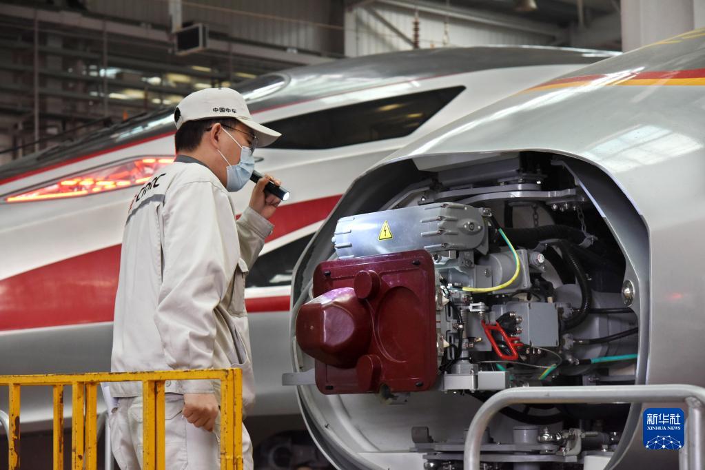 1月4日,一名技术人员在查看“复兴号”智能动车组。