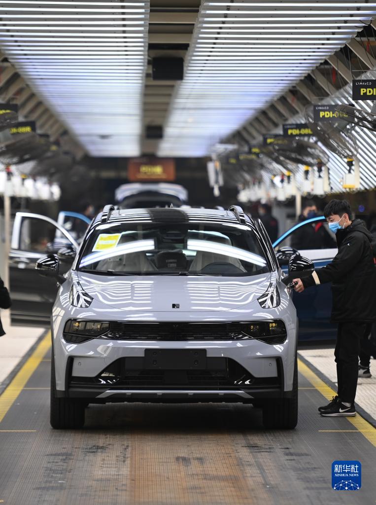 1月5日,工人在领克汽车浙江余姚工厂总装车间进行下线前的检查工序。