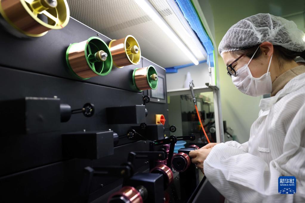 1月5日,在合肥市瑶海区长三角数字科技示范园,安徽华晶微电子材料科技有限公司的员工在集成电路键合丝生产线上作业。
