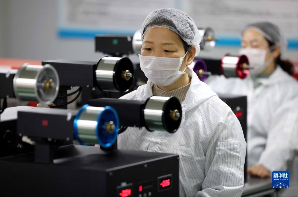 1月5日,在合肥市瑶海区长三角数字科技示范园,安徽华晶微电子材料科技有限公司的员工在集成电路键合丝生产线上作业。