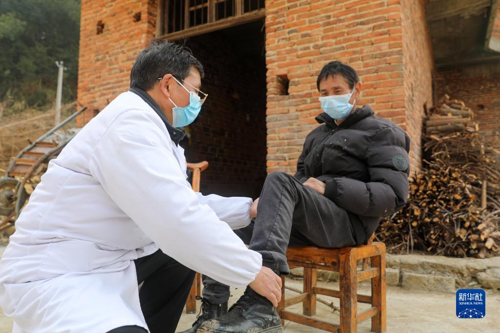 1月5日,在衡阳县溪江乡松竹村,家庭医生上门为村民进行健康检查。