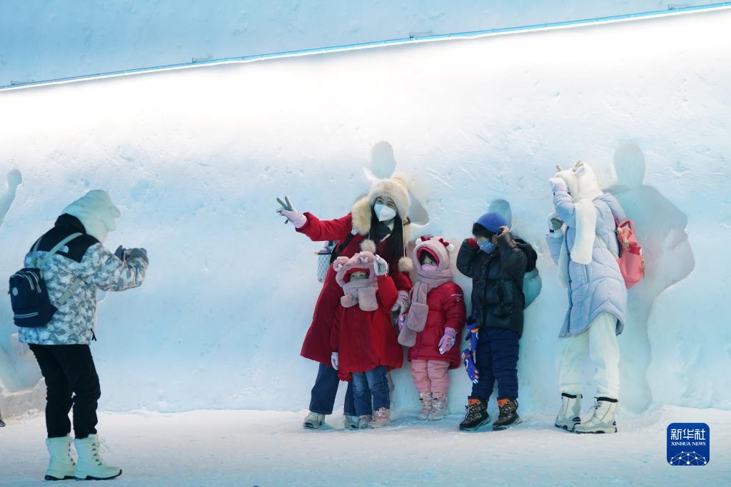 1月5日,游客在哈尔滨冰雪大世界园区游玩。