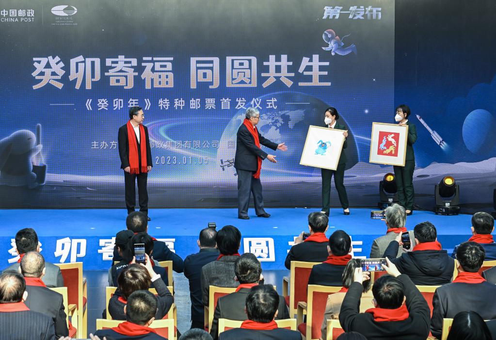 中国邮政5日发行《癸卯年》特种邮票。邮票一套两枚,分别名为“癸卯寄福”“同圆共生”。《癸卯年》特种邮票是中国生肖邮票第四轮中的第八套,票面图案由年近百岁的艺术家黄永玉绘制。