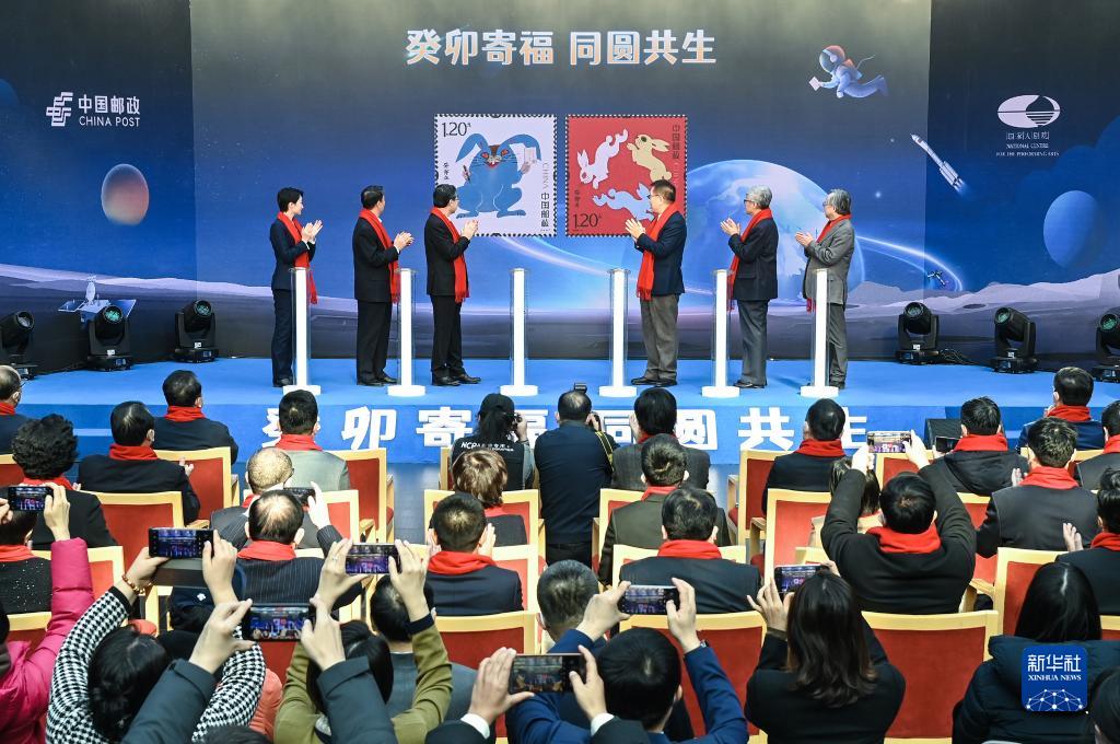 1月5日,嘉宾在邮票首发仪式现场为《癸卯年》特种邮票启幕。