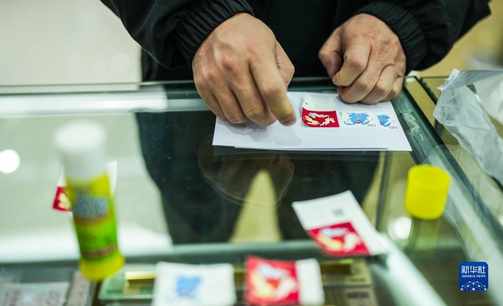 1月5日,市民在贵阳市一处邮局网点粘贴《癸卯年》特种邮票。