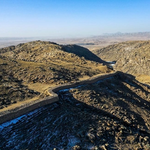 固阳秦长城局部(1月6日摄,无人机照片)。