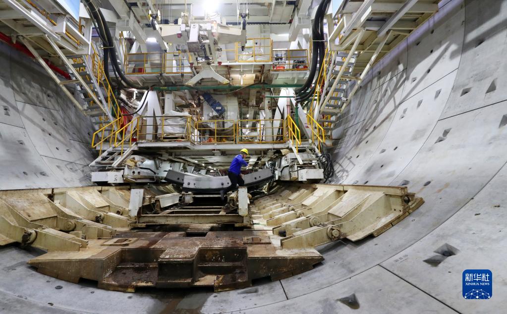 1月6日,在中铁隧道局上海市域铁路机场联络线11标项目施工现场,工人从管片吊机下走过。