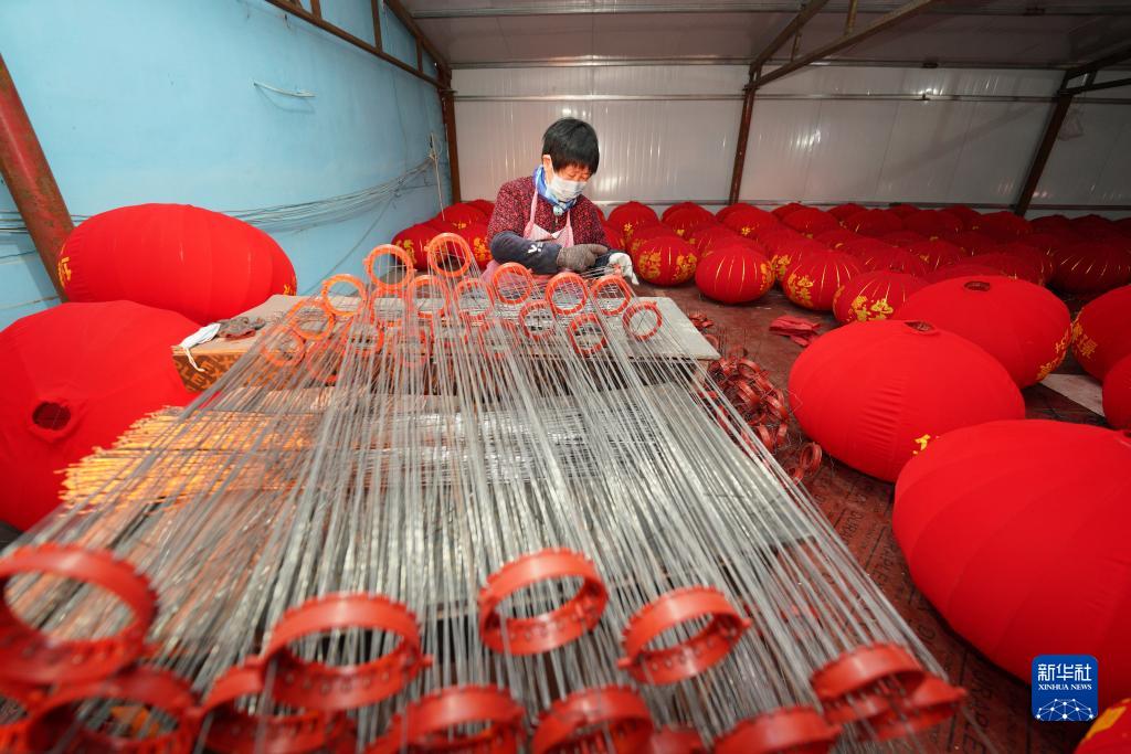 春节临近,河北省沙河市十里亭镇曹章村灯笼制作工坊的工人忙着赶制大红灯笼,供应节日市场。曹章村是远近闻名的“灯笼制作专业村”,灯笼生产成为当地农民增收的重要途径。