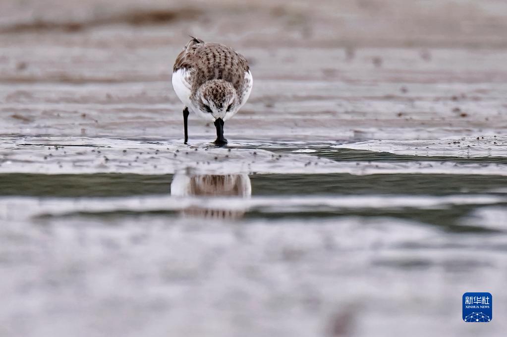 近日,世界珍稀鸟类、国家一级重点保护野生动物勺嘴鹬在福建省泉州晋江深沪湾滩涂一带栖息觅食。勺嘴鹬分布区域狭窄,数量稀少,被称为“鸟中大熊猫”。