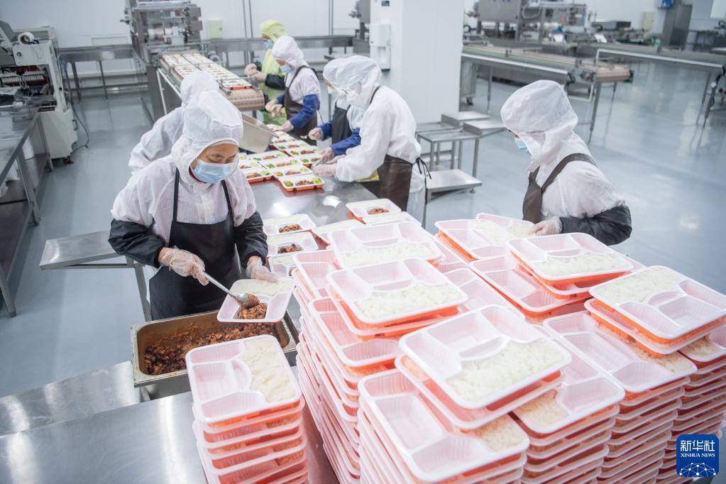 1月6日,武东餐饮基地工作人员在分装盒饭。
