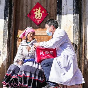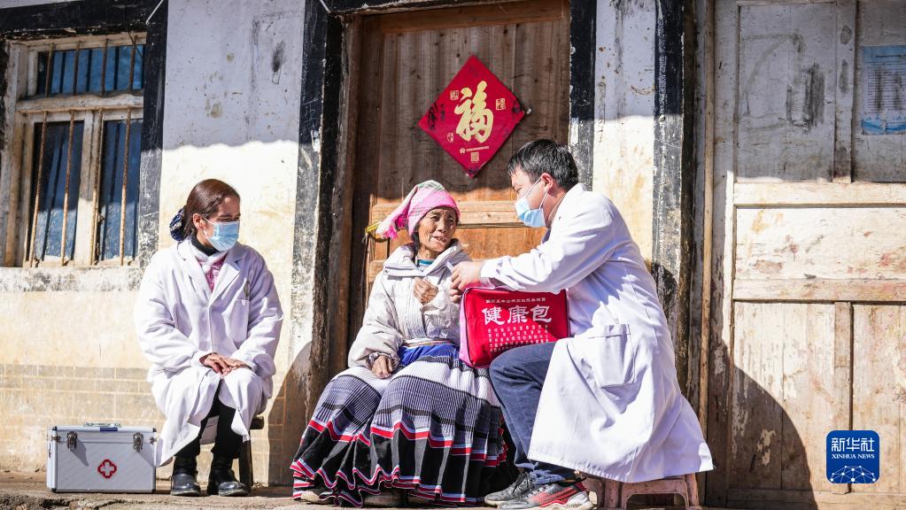 1月6日,医务工作者到六盘水市钟山区金盆苗族彝族乡双塘村村民家中巡诊送药。