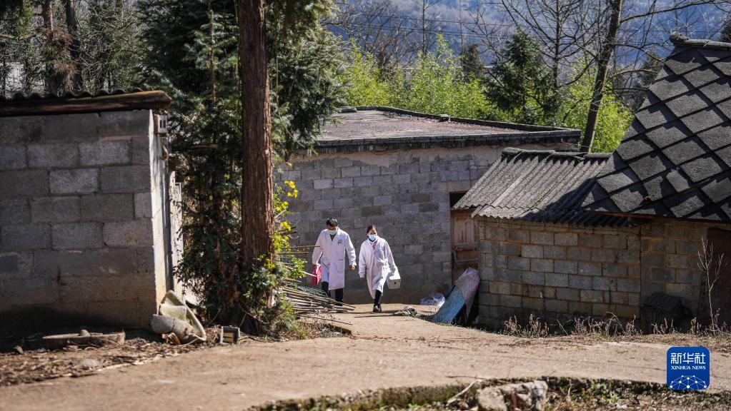1月6日,医务工作者在六盘水市钟山区金盆苗族彝族乡双塘村走访。