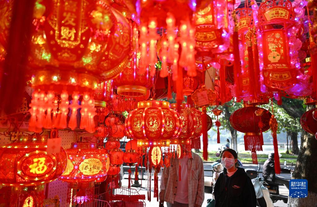 1月6日,市民在海南省海口市博爱路年货市场选购春节饰品。