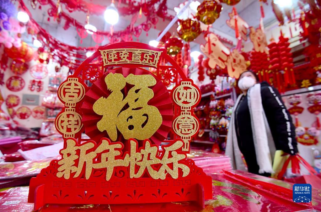 1月6日,市民在河北省邯郸市一处年货市场选购春节饰品。
