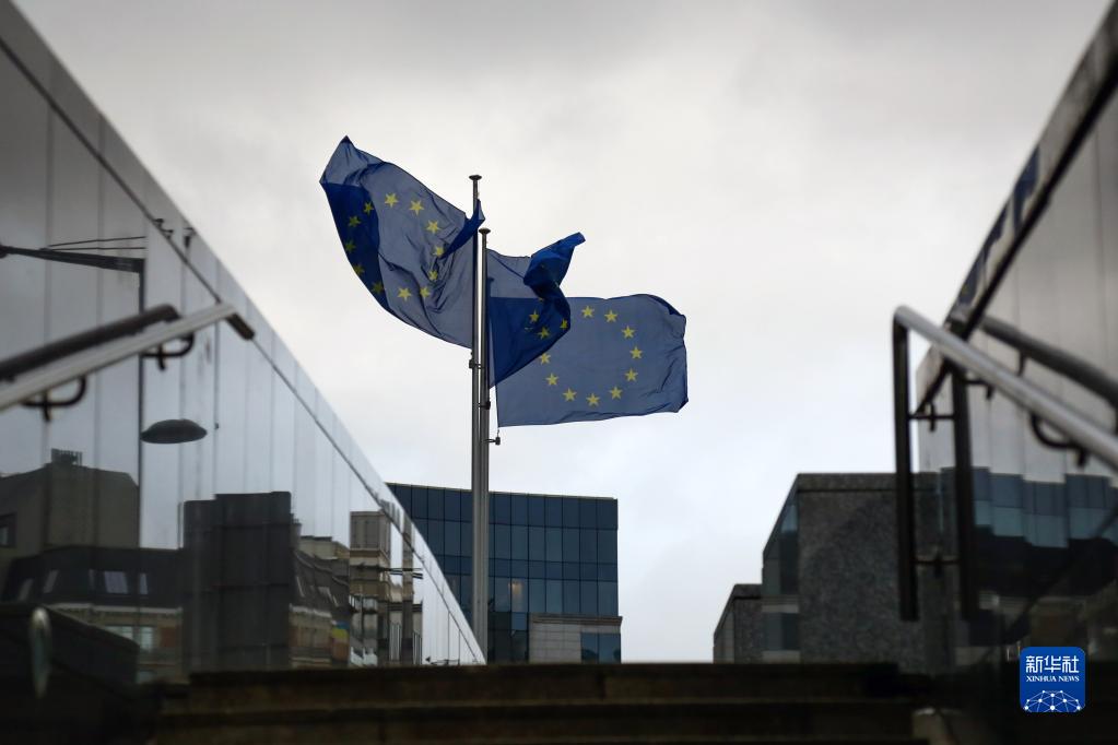 1月6日,欧盟旗帜在比利时布鲁塞尔的欧盟委员会大厦外飘扬。