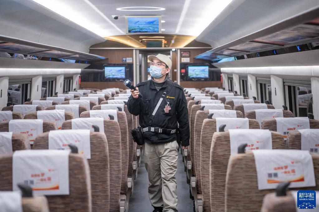1月7日,2023年春运启动。在武汉动车段,工作人员通宵对近130组动车进行检修、保温作业,停靠在存车线上的动车排列整齐如同一支“陆地舰队”。