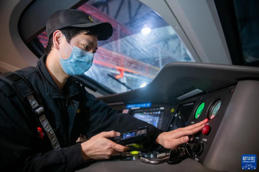 1月6日,地勤机械师在测试动车组列车司机室设备。