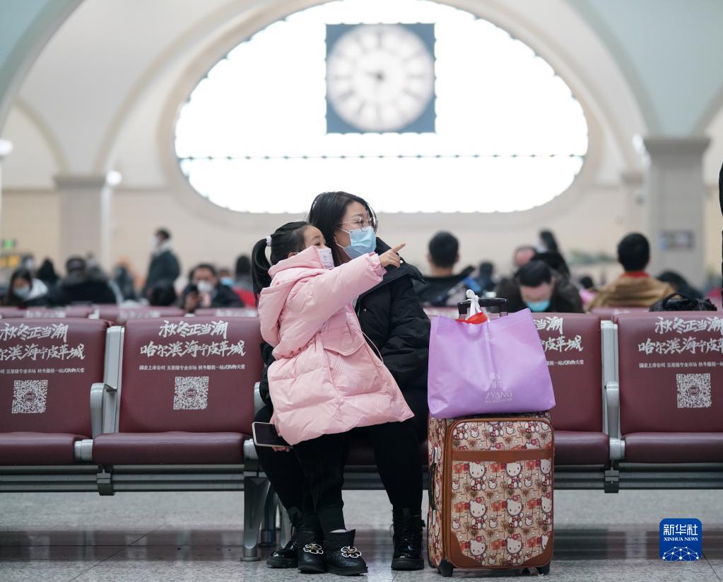 1月7日,旅客在哈尔滨火车站候车大厅候车。