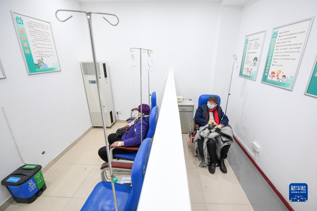 在江苏省苏州市姑苏区娄江社区卫生服务中心,居民在输液区输液(1月6日摄)。