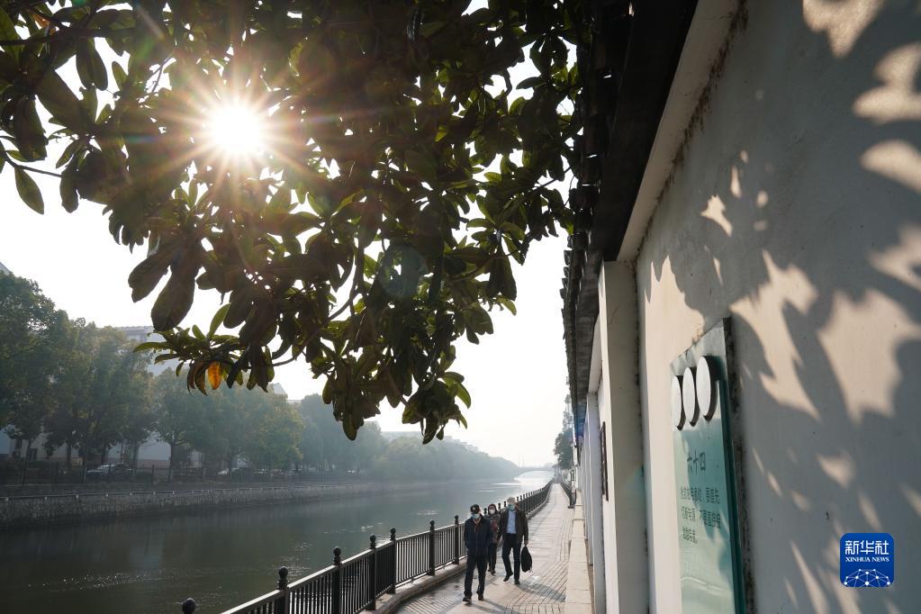 1月6日,市民在苏州市姑苏区二郎巷健身步道散步。