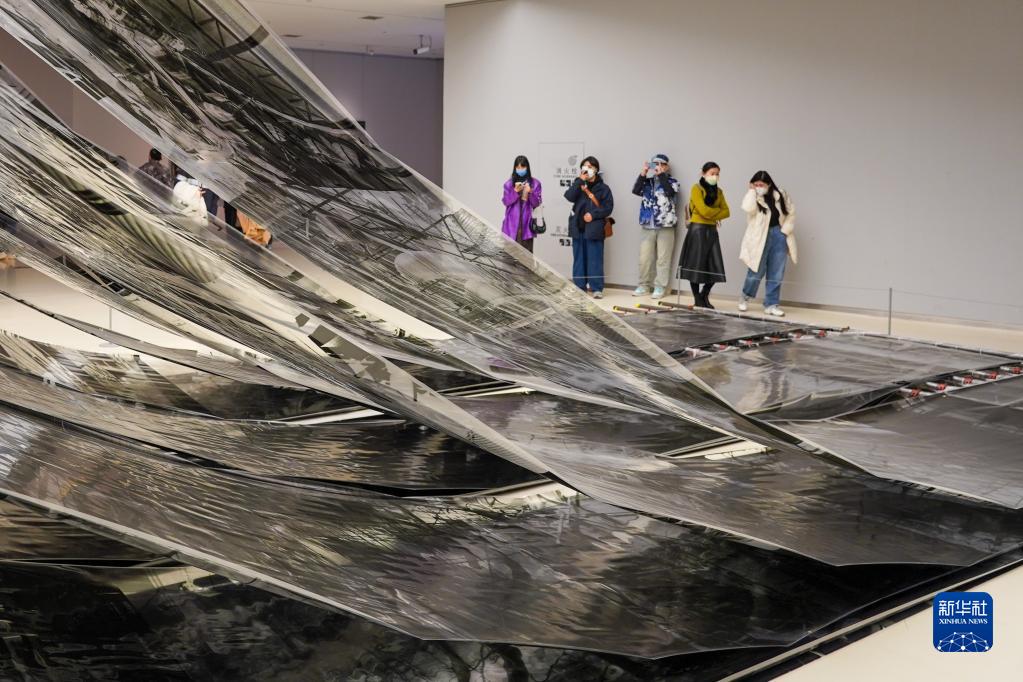 1月7日,观众在“2022济南国际双年展”上参观艺术作品《兄弟》。
