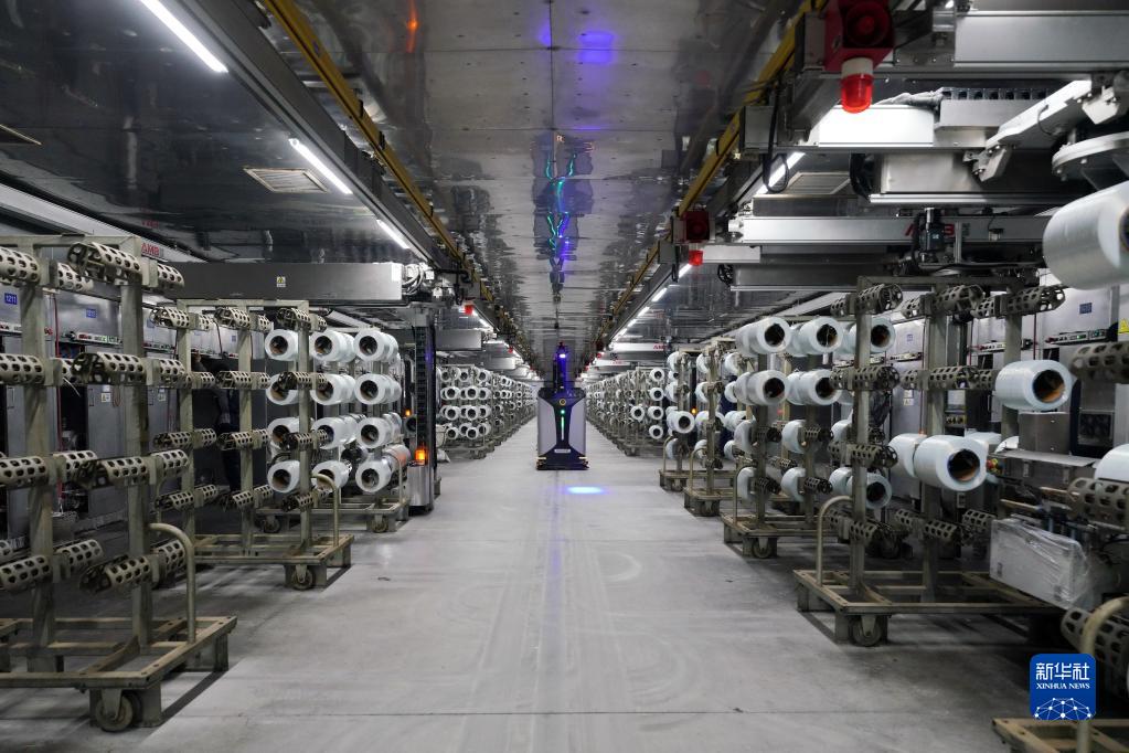 1月6日,智能无人搬运车在沙河市一家玻璃产品生产企业的车间运输玻璃纤维产品。
