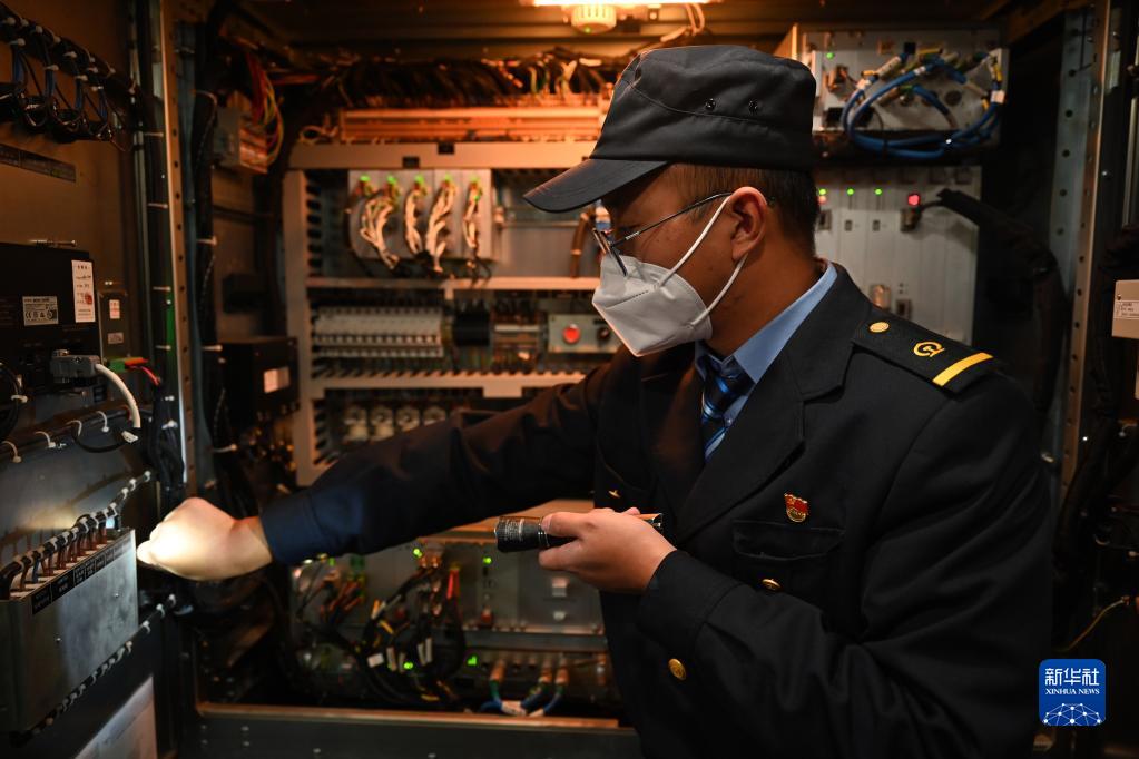 1月7日,在中国铁路南昌局集团有限公司福州车辆段,工作人员在检修“绿巨人”列车的配电间设备。