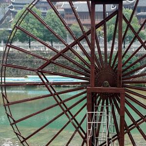 春节临近,在湖北省恩施土家族苗族自治州宣恩县城兴隆老街前,多架大型农耕水车正加紧安装。安装好的水车,将成为展示少数民族农耕文化的风景线。